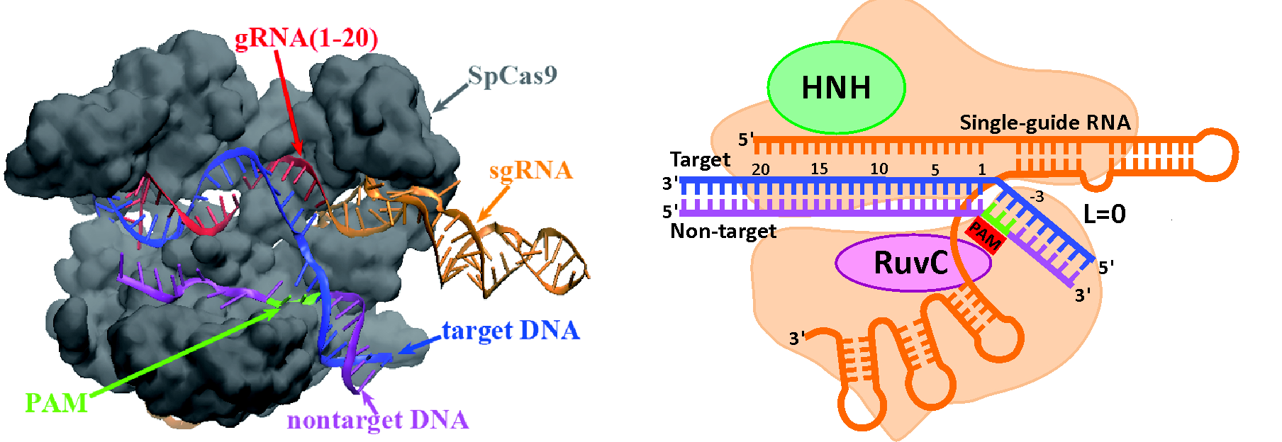 The CRISPR/Cas9 nuclease system is a transformative technology for genome engineering, and its success hinges on the strategic design of guide RNAs (gRNAs) to precisely control on- and off-target cleavage efficiencies. To address this challenge, we developed two computational models built on the underlying physical principles of CRISPR gene editing.