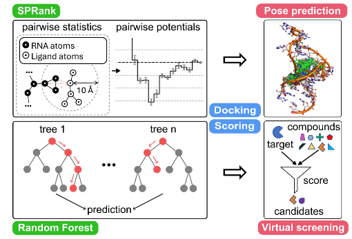 • SPRank [3] a hybrid machine-learning and knowledge-based scoring function, enhances docking tools by sampling flexible ligands against diverse RNA structures.